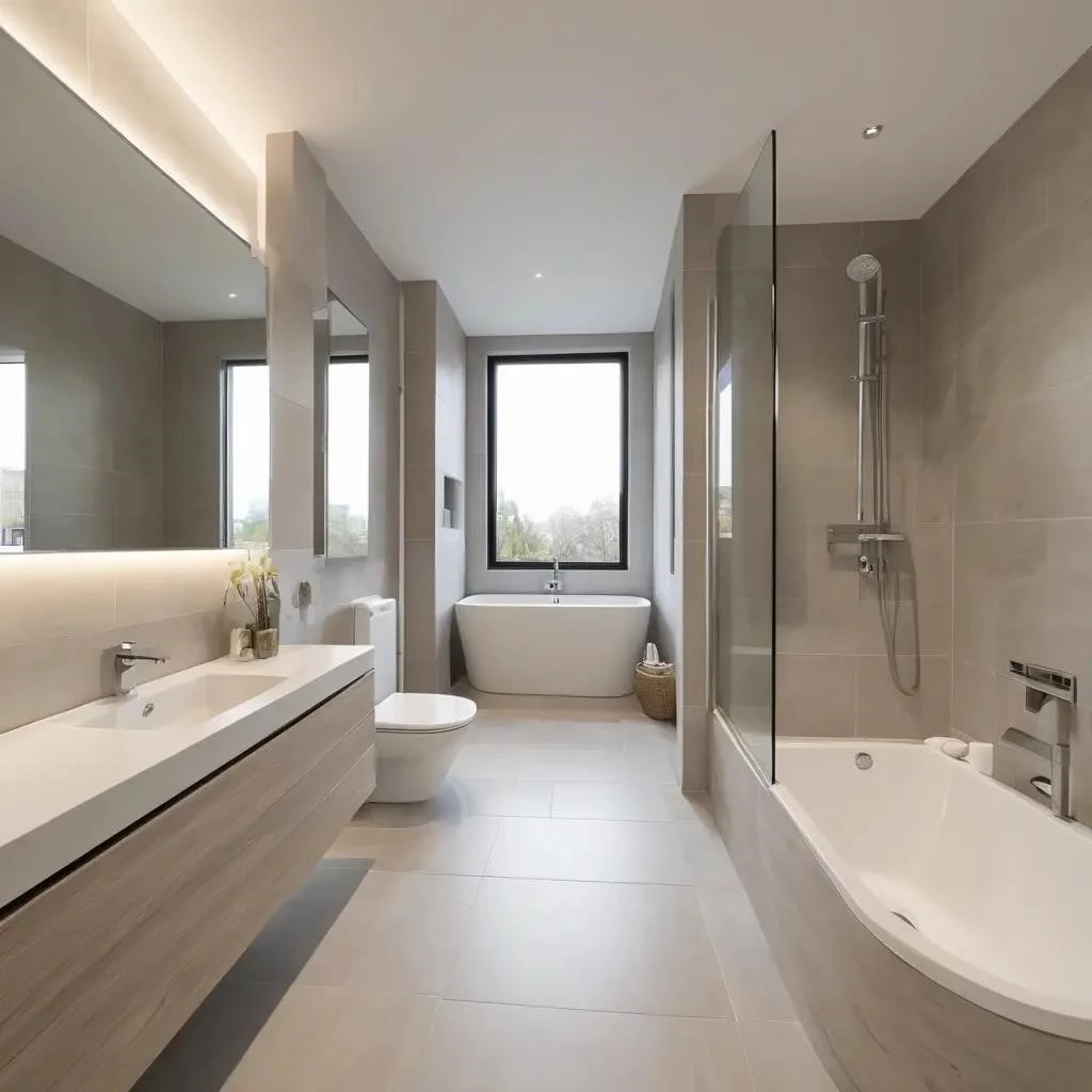 Освещение и светлые тона создают визуальное расширение пространства. В интерьер вписаны керамогранит, плитка и акцентная стена, формирующие современный стиль. Проект ванной и визуализация задают сценарии света. Зеркало с подсветкой, раковина, санузел и совмещенный санузел требуют зонирования. Стеклянная перегородка, душевое ограждение, унитаз, инсталляция и душевой трап, это эргономика и планировка. Ремонт включает коммуникации, гидроизоляцию, отделку и теплый пол. Тумба под раковину, столешница, шкаф, полки, ниши и габариты учтены. Сантехника, смеситель, тропический душ, стиральная машина, полотенцесушитель, системы хранения, расстановка мебели и влагостойкие материалы важны.